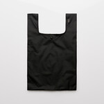 Printable & reusable grocery bag Light weight, 2.6 oz/yd² 100% recycled polyester rip-stop Black metal snap to close, elastic cord to secure once folded Removable paper pip label 13-3/4 x 20-1/2 inch