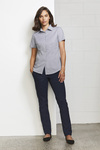 - Ladies features bust darts, waist shaping and neatly finished placket